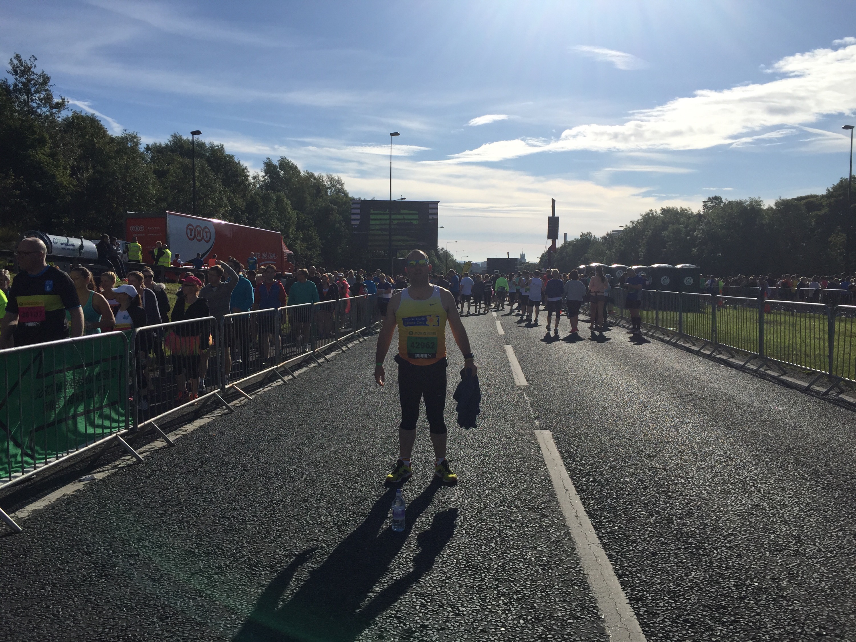 We met back up again, and then walked to the baggage buses to retrieve our gear. There was a huge changing area, which was great, as I could get into some comfy clothes for the bus journey home. We then made our way to the bus, to find that only two guys had gotten there before us! So, we had time to chill out, have some snacks, and enjoy the sun, before boarding the bus back to Glasgow.