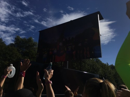 And then we made our way into the starting pen. As we did so, the sun broke through the clouds, and the heat began to build. There were plenty of large screens by each pen, which was fantastic: it really kept you entertained as you waited. I also did my first ever Periscope broadcast, and having watched it back, I definitely need to give more thought to what I’m doing in future. It was fun 🙂