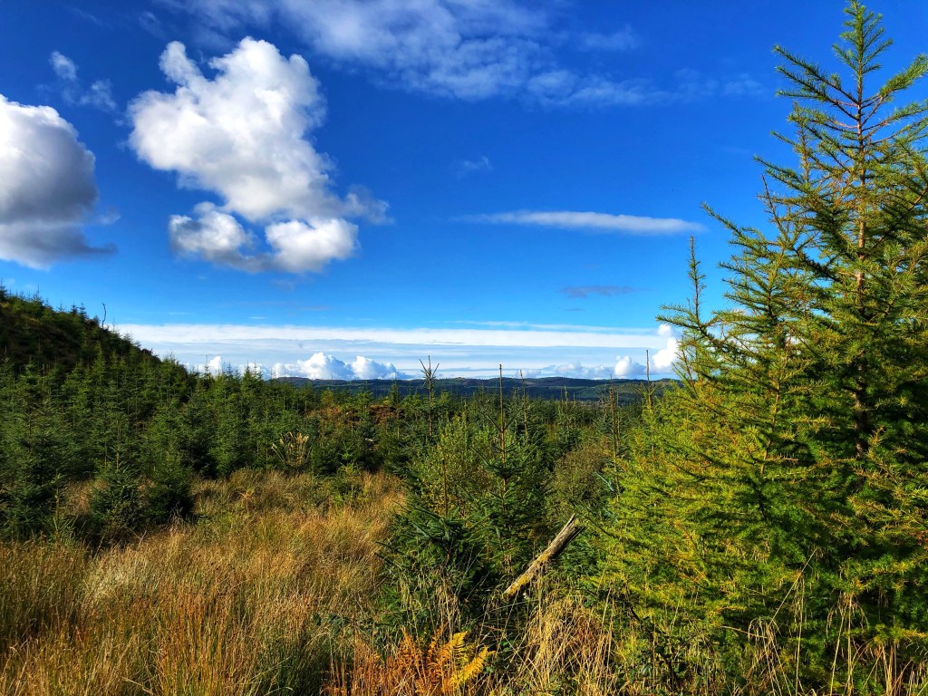 After Wednesday’s escapade, we went for a trail walk on Thursday morning, heading up into the Kintarbert Forest, taking the climbing road rather than the loop. I had an afternoon meeting so although we were enjoying our ramble we had to turn back all too soon!