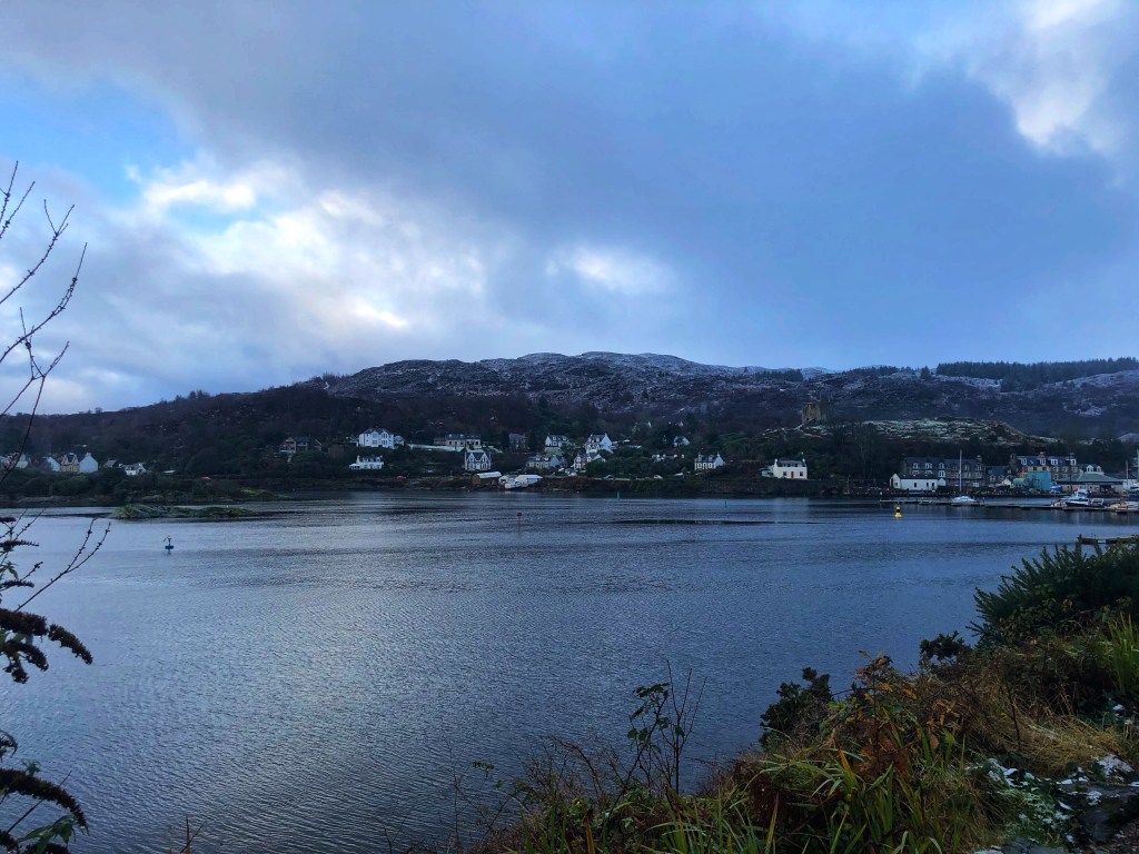 We woke up to a very light icing-sugar dusting of snow, but by the time I got out at lunchtime the snow had pretty much washed away with the rain. I started out running in the rain, but it cleared during my short lunch run to leave a lovely view of the harbour.