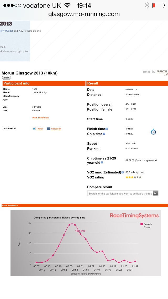 Goody Bag: no goodie bag, but we did get a MoRunning headband and a bottle of lucozade sport