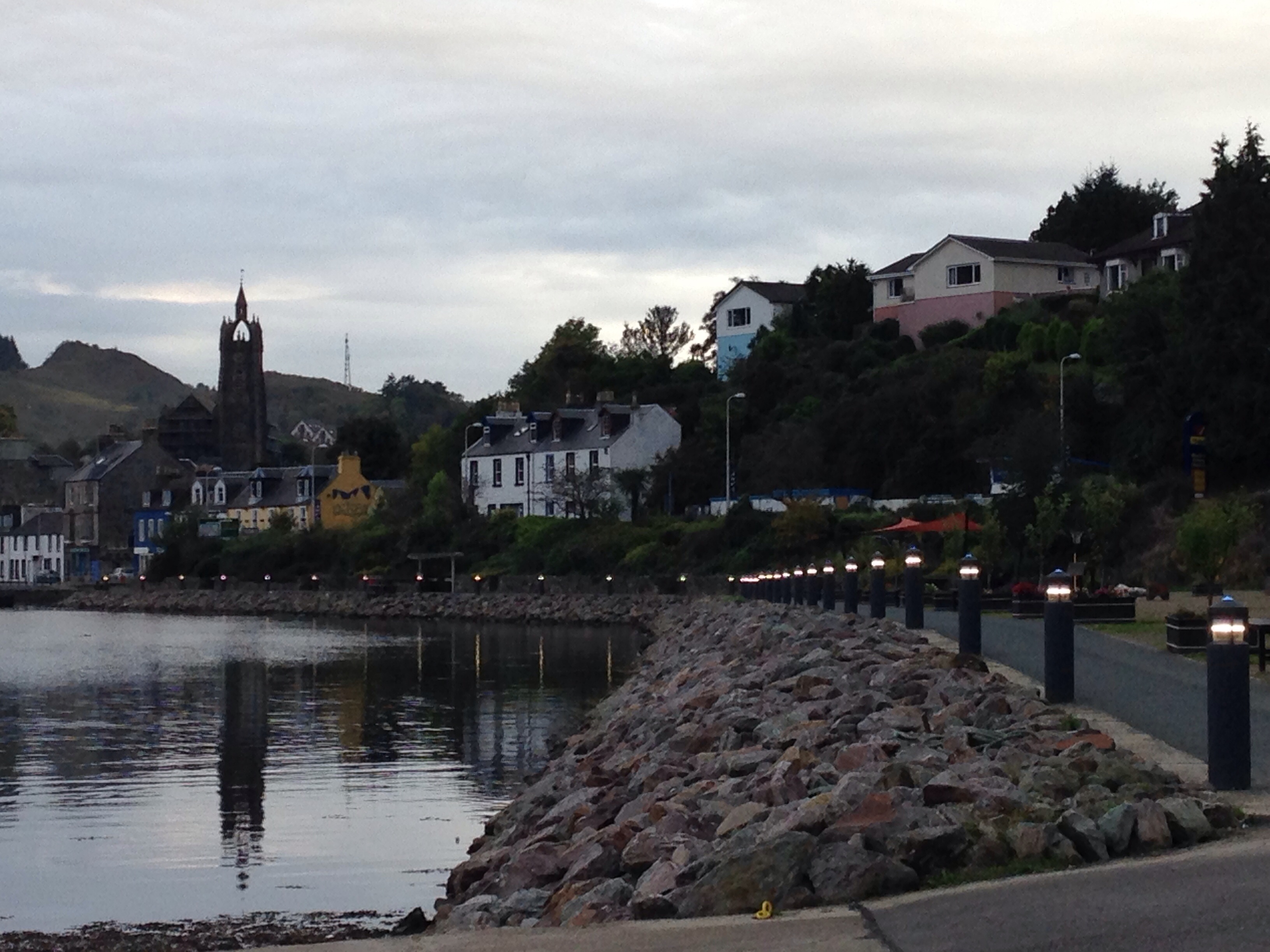 Eventually, we made it back to the car. We drove into Campbeltown, headed to Tesco, and stocked up on pots of fresh pineapple. We then drove out of town and up to Gobagrennan. The road was pretty good, so before we knew it, we were at Loch Lussa, which was beautiful. All along the road, we were passing runners so we had the windows down, and we cheered them as we passed.